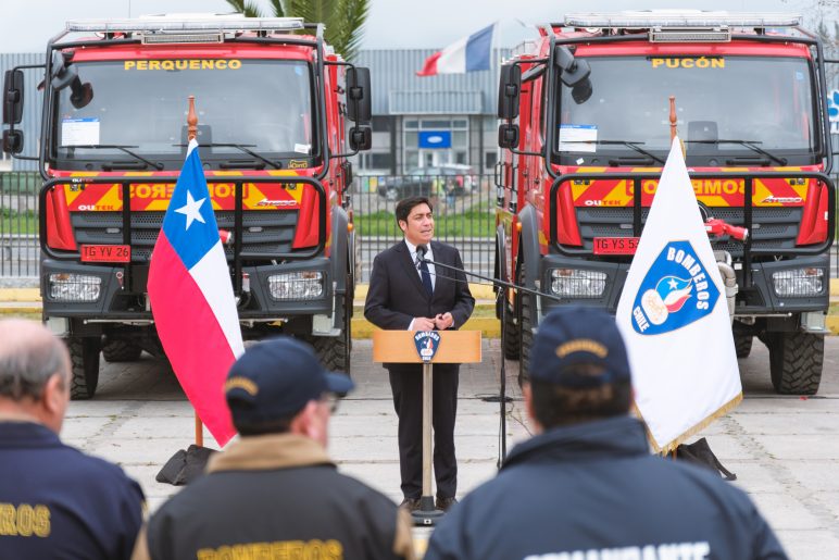 Este jueves, en la Academia Nacional de Bomberos de Talagante, el subsecretario del Interior, Víctor Ramos Muñoz, junto al Presidente Nacional de Bomberos de Chile, Juan Carlos Field, entregaron nueve carros bomba forestales destinados a las comunas de Pucón, Collipulli, Curacautín, Capitán Pastene, Victoria, Perquenco, Puerto Saavedra, Traiguén y Curarrehue. Los vehículos adquiridos gracias a […]