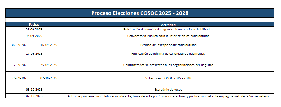 Estimados/as representantes de organizaciones sociales que conforman el padrón electoral para el proceso de elecciones de Consejo Consultivo Nacional de la Subsecretaría del Interior 2025-2028, les informamos que se ha iniciado la segunda etapa de este proceso, en la cual las organizaciones del padrón tienen la opción de inscribir una candidatura para formar parte del […]