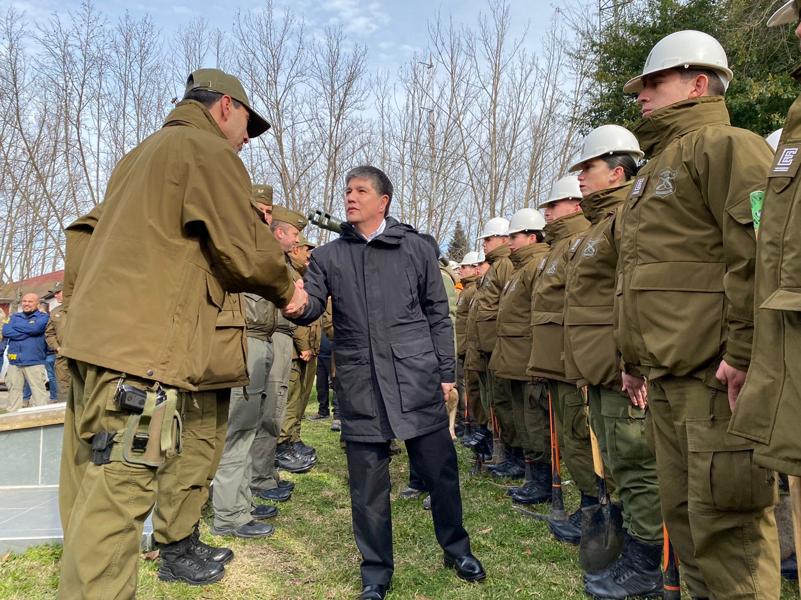 En cuanto al despliegue de Carabineros, la autoridad dijo que “acabamos de saludar el refuerzo que ha llegado a la región por parte de Carabineros, que ha trasladado a 20 efectivos de la Escuela de Formación de Sub oficiales y 50 carabineros alumnos que vienen de la Escuela de Formación de Carabineros de Chile”, además de aportar con “dos guías con los perros especializados en la búsqueda de personas y un guía con un perro especializado también en el rastreo”.