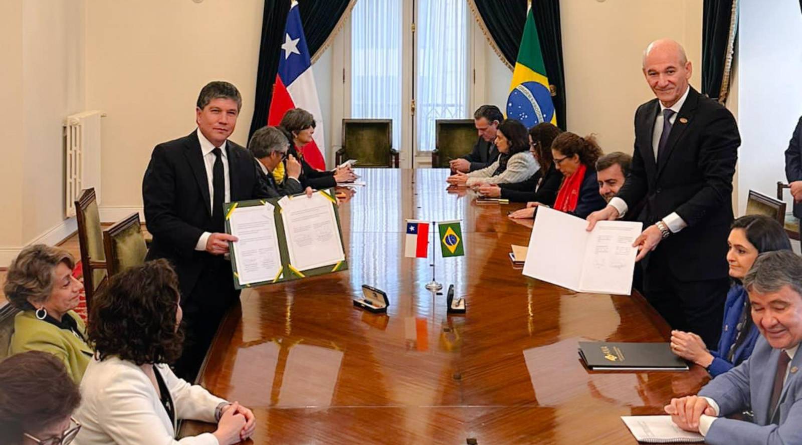 En una ceremonia liderada por el subsecretario del Interior, Manuel Monsalve, y el ministro de Estado Jefe del Gabinete de Seguridad Institucional de la Presidencia de Brasil, Marcos Antonio Amaro Dos Santos, ambos países firmaron en el Palacio de La Moneda un memorando de entendimiento (MOU) en materia de ciberseguridad. Lo anterior, en el marco de la Visita Oficial del Presidente Luiz Inácio Lula da Silva a Chile, iniciada el 5 de agosto.